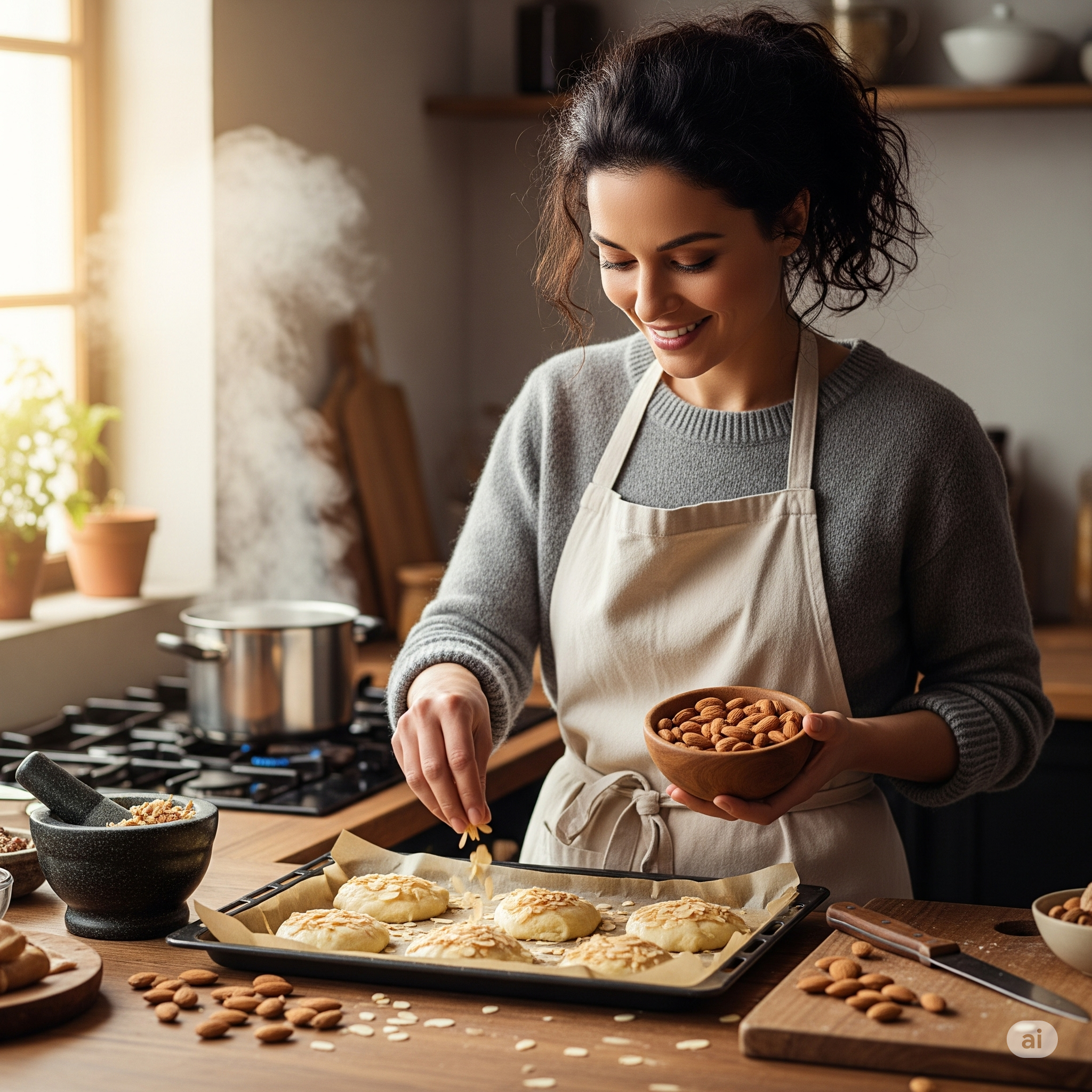 - 샐러드나 수프 토핑으로: 마른 팬에 살짝 구운 통아몬드나 슬라이스 아몬드를 샐러드, 수프, 머핀, 빵 위에 뿌리면 식감과 풍미를 더할 수 있습니다.